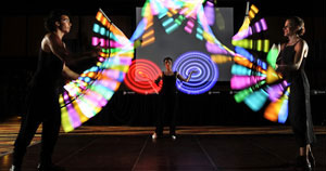 Además de trabajar con un elemento de riesgo y belleza como el fuego en exteriores, ofrecemos performances con luces para exteriores o interiores.